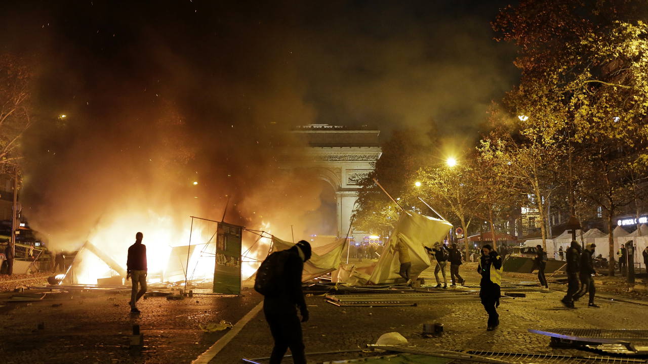 Uno scatto della mostra di Adnan Farzat sugli scontri a Parigi durante le proteste dei gilet gialli