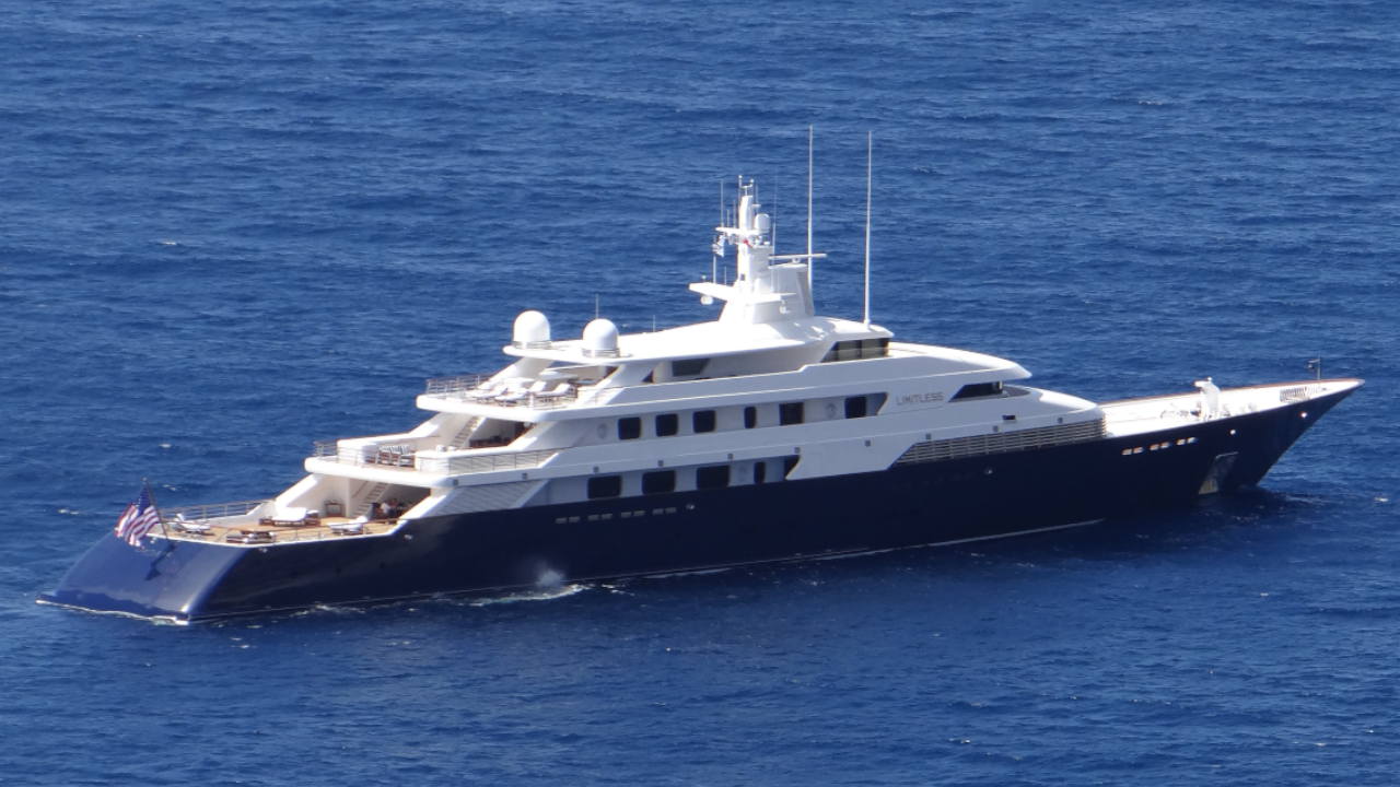 Con 96,25 metri di lunghezza e 12,50 di larghezza il Limitless è tra i più grandi super yacht privati del mondo. Costruito nel 1997 dal costruttore navale tedesco Lürssen, appartiene a Les Wexner, uomo d\'affari americano attualmente presidente e amministratore delegato della società Brands meglio conosciuta per il suo marchio Victoria\'s Secret e uno dei più grandi collezionisti d\'arte del mondo – possiede tra l\'altro un dipinto di Picasso da 40 milioni di dollari - e fondatore del Wexner Center for the Arts. Il design esterno del Limitless è stato progettato da Bannenberg&Rowell con la cooperazione di Jonathan Quinn Barnett, mentre l\'interior è stato affidato a François Catroux e Tim Heywood. Alimentato da due motori da 5420 kW ciascuno, raggiunge una velocità massima di 25 nodi e 17 per quella di crociera, ed è stato il primo yacht a sfruttare una combinazione di propulsione diesel-diesel-elettrica. I passeggeri sono ospitati in 3 suite a doppio letto e 2 doppie a cui si aggiunge la master suite, 20 i membri dell\'equipaggio. Non esistono informazioni sulle dotazioni leisure, ma tra quelle tecniche fornite ce ne sono alcune uniche come un joy stick F-16 di provenienza aeronautica per controllare il timone, una serie di telecamere a prua per filmare delfini e altri abitanti del mare, lo specchio di poppa è costruito per dare l\'illusione di essere in movimento anche quando si è in rada e una serie di luci marcano di notte la linea di galleggiamento.