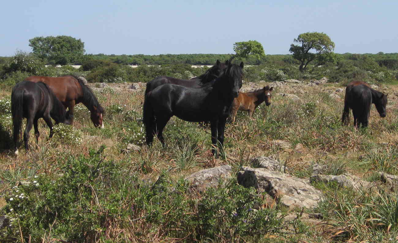 Ma il Cavallino della Giara (anche scientificamente detto “Equus caballus jarae”) non è il solo abitante dell’altopiano. Se sarai paziente e ti muoverai con attenzione tra questi boschi, potresti avere la fortuna di avvistare anche le volpi, martore, cinghiali, lepri e perfino gatti selvatici, mentre seguendo i loro richiami potrai avvistare tra gli alberi le diverse specie di falco e altri volatili tipici del territorio.