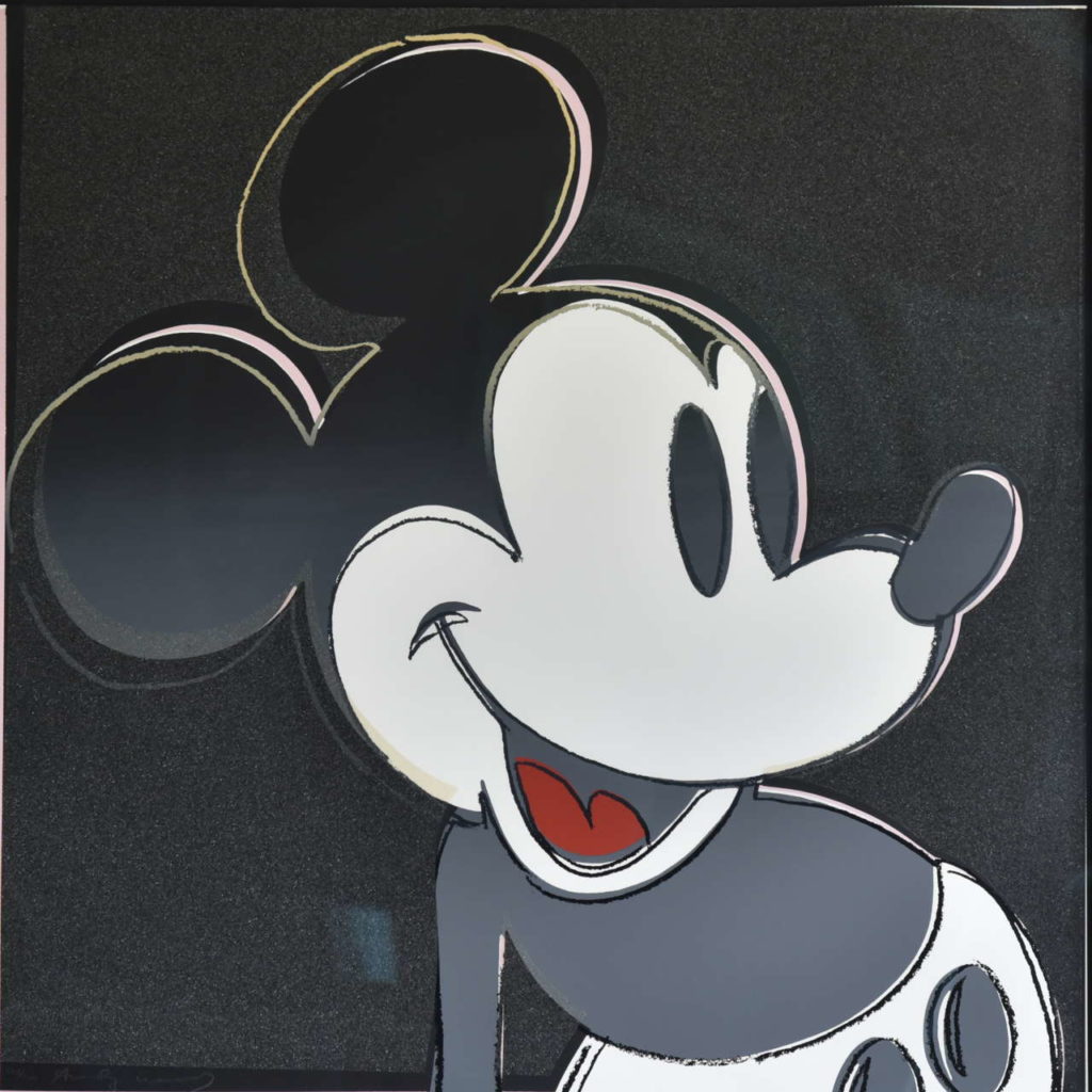- Andy Warhol, Mickey Mouse, 1981, Serigrafia e polvere di diamante su carta, 96,5x96,5 cm, 124/200, Collezione privata, © The Andy Warhol Foundation for the Visual Arts Inc. by SIAE 2019 per A. Warhol