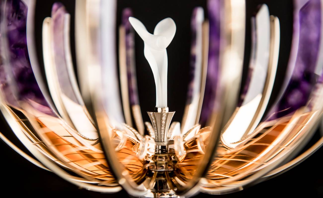 Un incontro tra due mondi, frutto tanto della tradizione quanto delle più avanzate tecniche di oreficeria. Alto 160mm e dal peso di 400g, l’Uovo riposa su una base d’oro bianco 18 carati finemente decorata a mano. Il “guscio” è costituito da braccia in oro rosa - impreziosite da decorazioni in diamante e ametista - che, attraverso un meccanismo interno posto alla base, si schiudono rivelandone il contenuto: una riproduzione in cristallo di rocca smerigliato e scolpita a mano dello “Spirito dell’Estasi”, la musa ufficiale della casa automobilistica. Questo meccanismo, ritenuto il più complesso mai creato per un Uovo Fabergé, unisce la tradizionale arte orafa con le più moderne tecniche di micro ingegneria e di CAD (progettazione assistita dall’elaboratore grafico) per creare un’opera d’arte senza eguali. Una dimostrazione della reputazione di eccellenza che il marchio Fabergé possiede ancora oggi.