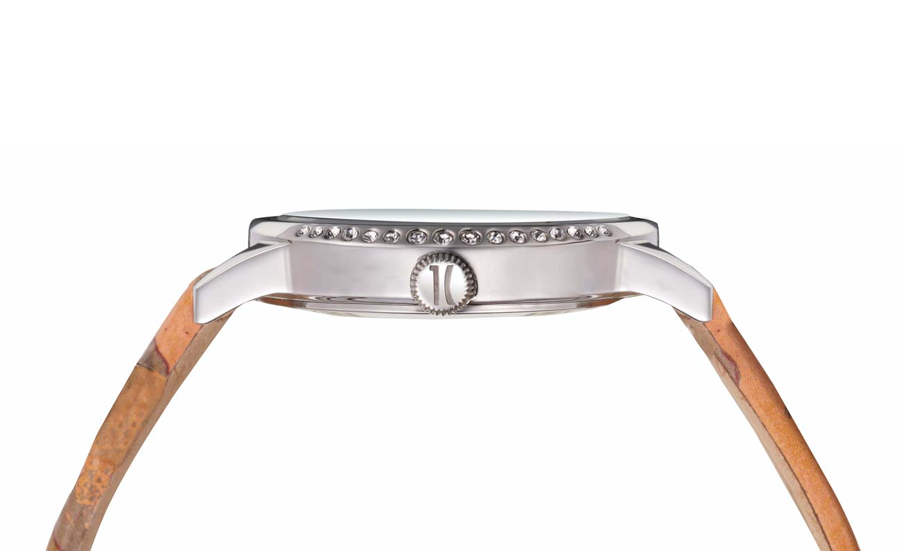 La collezione Panarea spicca per una cassa d’acciaio rotonda di 32 mm di diametro con una lunetta decorata con cristalli degradé, delizioso dettaglio unconventional chic. Gli orologi Panarea sono dotati di un movimento al quarzo con funzioni ore e minuti con il logo 1A Classe che è stampato in nero direttamente sul vetro a ore 12; il quadrante, invece, sfoggia una lavorazione originale, il contrasto tra linee verticali e orizzontali disegna il monogramma 1C al centro.