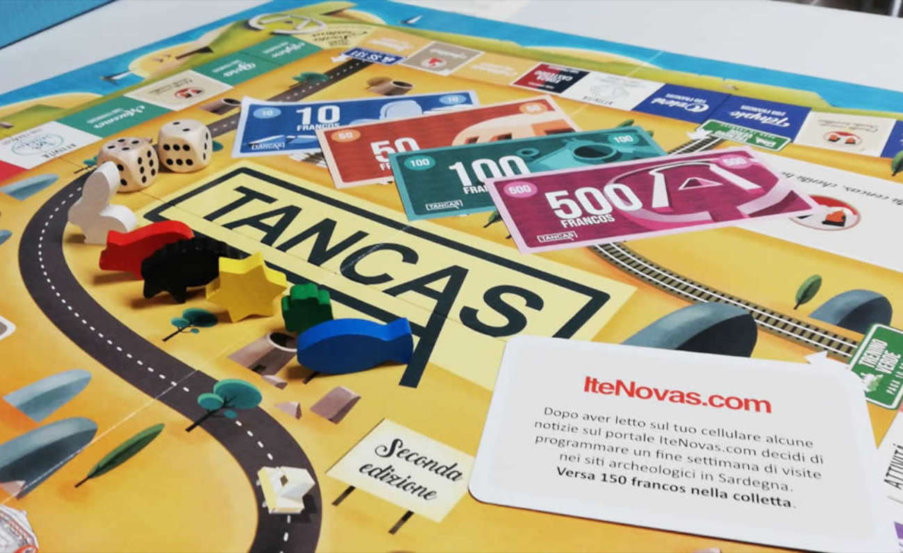 Ti presento quindi Tancas, nato dalla geniale mente di Simone Riggio, grafico di Santu Lussurgiu e dalla collaborazione con la cooperativa Demoelà. Dalla grafica moderna e intrigante, il gioco ci porta da subito dentro l’isola che si fa quadrata per stare perfettamente nel percorso che tutti conosciamo bene. Davanti a noi i terreni da comprare e su cui edificare, le ghiottissime caselle società, quelle speciali e ovviamente due pile di carte pronte a sorprenderci. Dove sta la novità?