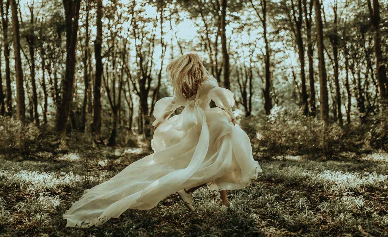 Ecco che appaiono figure femminili delicate, che fanno uso dei colori e delle forme della natura per esprimere la loro sottile e impeccabile eleganza, sfilando con passo leggiadro su un passerella quadrata, sobria, che nulla vuole sottrarre agli abiti che si materializzano con cadenza regolare e invitano lo sguardo a soffermarsi. Le modelle incarnano l’ideale delle ninfe dei boschi, con acconciature romantiche e preziose che valorizzano grandi orecchini a pendant floriformi e geometrici, e passeggiando con calzature basse che evocano le scarpette magiche delle favole.