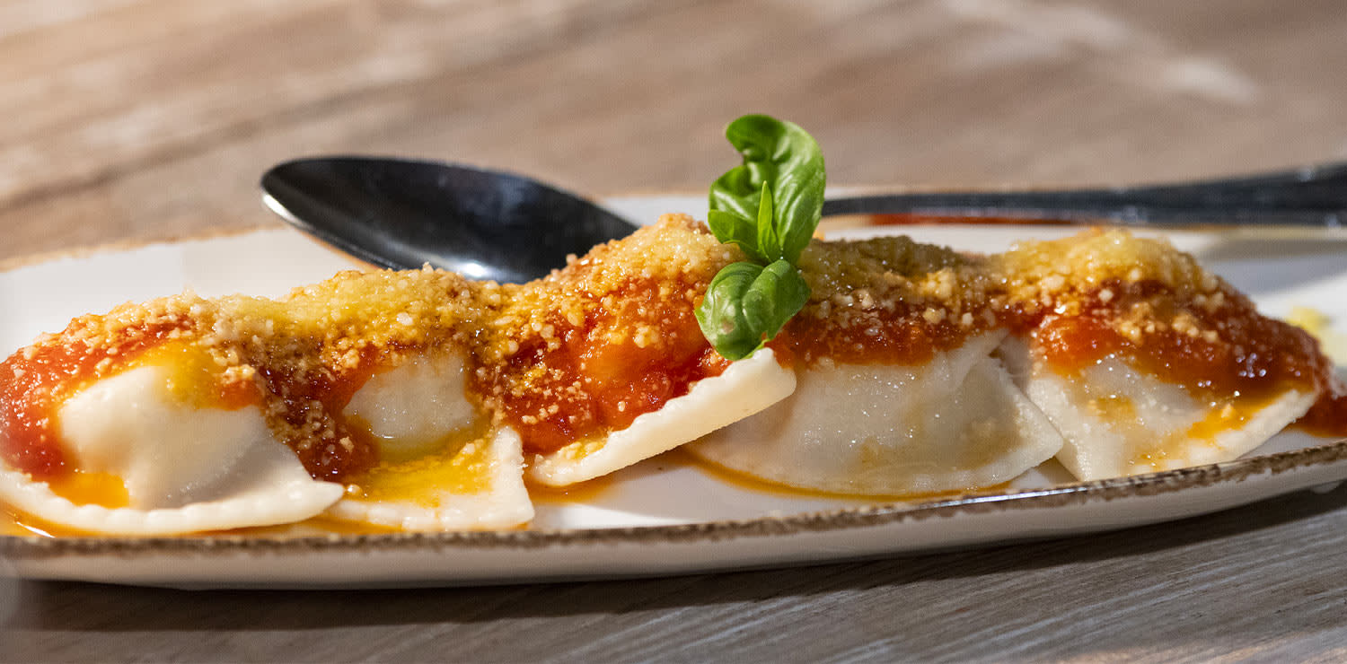 Molti potrebbero rimanere sorpresi nel trovarsi come piatto principale i Puligioni, dolci ravioli di ricotta conditi con un sugo di piselli, anch'esso rigorosamente dolce. Sì, è proprio così: nella Gallura più autentica, i ravioli di ricotta presentano un inaspettato tocco dolce all'interno, e nonostante siano spolverati di formaggio pecorino, è il sapore dolce predominante a soddisfare i palati, creando un'esperienza unica. Questa combinazione può confondere per un attimo, ma presto si apprezza la nota salata apportata dal formaggio, per poi ritrovarsi di nuovo immersi nella dolcezza grazie ai piselli novelli utilizzati nel sugo. Sebbene la versione salata dei Puligioni sia più diffusa e apprezzata, provare quelli dolci è un'esperienza imprescindibile per chi desidera conoscere appieno i piatti autentici della tradizione della Costa Smeralda®.