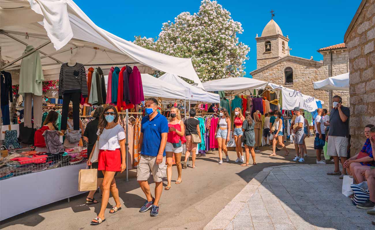 Essendo gli artisti di casa a San Pantaleo, con le loro botteghe, i prodotti artigianali la fanno da padrone: dai monili più semplici o eccentrici alle cornici, dai coltelli alle borse e ai cappelli di paglia, passando per capi di abbigliamento e prodotti tipici locali, emblema dell’agroalimentare sardo, su tutti il formaggio e i salumi, ma anche il torrone e il miele, che, come pochi, stuzzicano il palato. Ma il mercato di San Pantaleo è poliglotta nei clienti e nell’offerta, per cui puoi trovare il cotone egiziano e la seta pakistana che confinano sulle bancarelle rendendo l’atmosfera ancor più suggestiva. È che è proprio il posto a esserlo: tra le casette di granito addolcito da oleandri e bouganville, all’ombra del massiccio di Cugnana, i mercanti godono di una location che non ha eguali, tanto che diversi stranieri hanno promosso San Pantaleo a loro buen retiro. Un’oasi di pace, un luogo che il tempo non riesce a intaccare, tanto che ha saputo mantenere intatta la sua autenticità, ricca di storia e di cultura. Col grosso vantaggio di essere a due passi dal porto e dall’aeroporto di Olbia: un gioiello al centro del mondo, le montagne alle spalle, il mare ai piedi e quella sensazione di essere perennemente in vacanza a San Pantaleo.