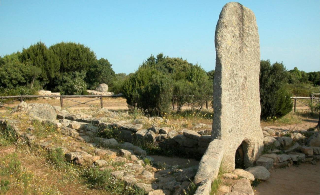 Subito dopo ci si sente avvolti dall’arco dell’esedra, un’altra grande peculiarità di questi siti archeologici presenti in Sardegna. Di questo spazio semicircolare è rimasto poco, ma la Tomba dei giganti Li Mizzani, costruita in un periodo tra il 1500 e il 1200 a.C, è riuscita a conservare i tratti più rilevanti come le lastre ortostatiche di piccole dimensioni, e il bancone-sedile che veniva usato per la raccolta delle offerte. Si trattava di un rito dal forte significato culturale, dove la religione serviva già da allora come mezzo per ricordare i defunti e renderli loro omaggio. La tomba ha tuttavia una sua caratteristica che la rende in questo caso unica rispetto alle altre, e si nota sul portello al centro della stele, che, molto probabilmente a seguito di un errore, fu lavorato con cura dalla parte che verte verso l’interno, quando invece era la parte esterna della tomba a essere levigata.