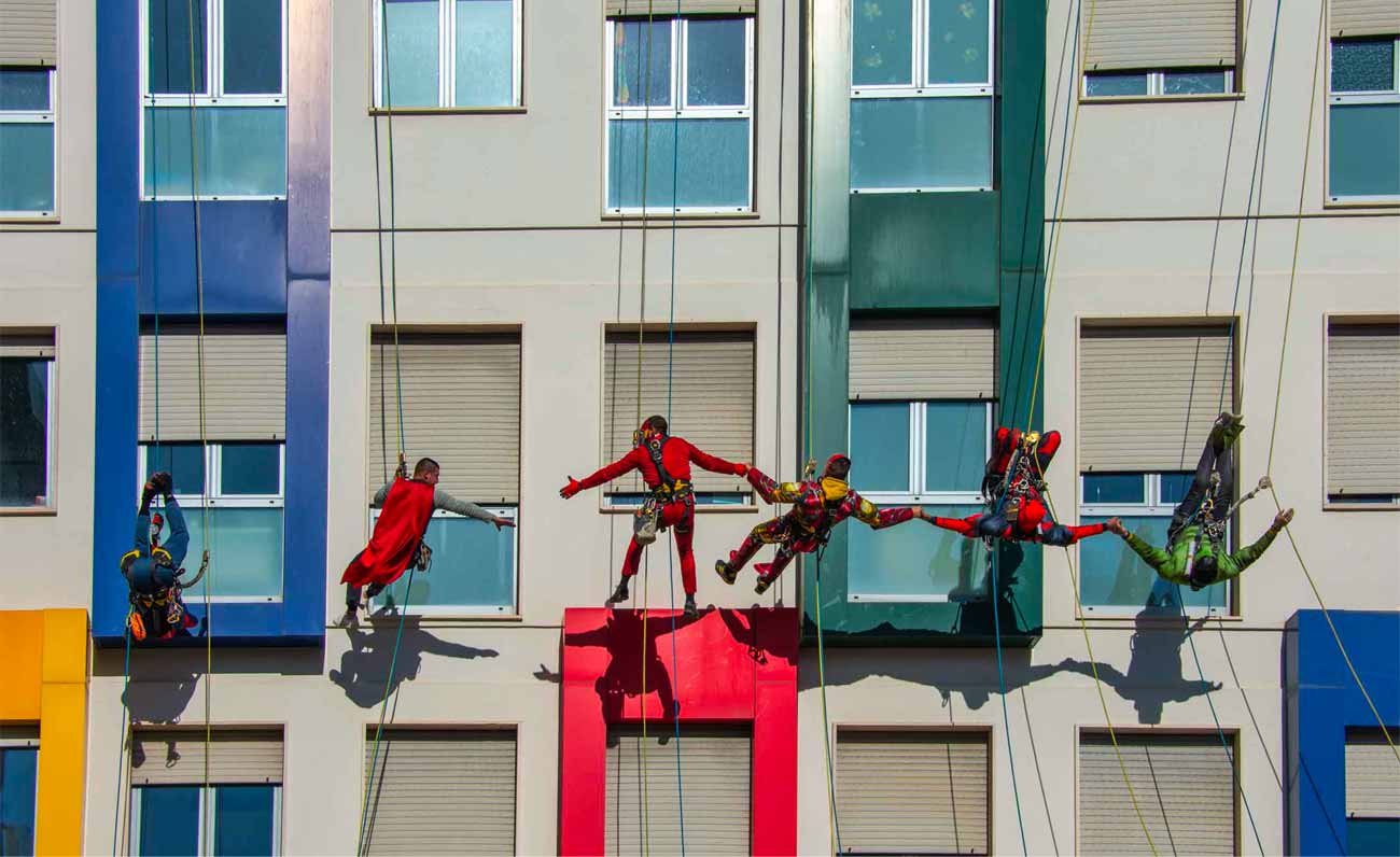 Ma il vero tocco di magia è stato dato dalla presenza dei SEA - Supereroi Acrobatici, che hanno fatto visita ai bambini ricoverati, portando con sé il loro entusiasmo e la loro energia positiva. I supereroi hanno fatto sognare i piccoli pazienti, trasportandoli in un mondo fantastico fatto di avventure e superpoteri. Grazie alla loro presenza, i bambini e i loro genitori, hanno potuto vivere insieme un\'esperienza indimenticabile. Anche i numerosi benefattori presenti hanno potuto partecipare commossi, ammirando con evidente stupore le mille acrobazie di questi fantastici volontari con i super poteri che calandosi dai tetti del Microcitemico si sono esibiti davanti alle finestre dei reparti pediatrici.