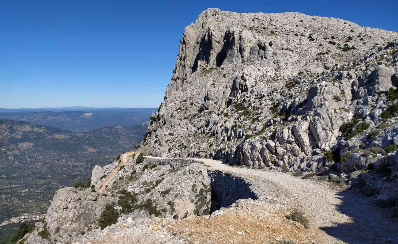 Sono diversi i sentieri che portano fino a Punta Corrasi, tra l’altro il punto più alto della Sardegna dopo le vette del Gennargentu. Il percorso più semplice è però quello che parte da località Tuones, che si trova circa a quota 1000 metri, dove è possibile parcheggiare l’auto al culmine di una strada ripida, cementata e ricca di tornanti che dal paese di Oliena si arrampica sul costone della montagna (seguire le indicazioni per Monte Maccione o servirsi del navigatore). Da Tuones parte dunque un sentiero (nel caso percorribile solo con mezzi 4x4) mai troppo impegnativo che, pian piano, sale fino a una piazzola sterrata da dove si può ammirare un ampio e straordinario panorama.
