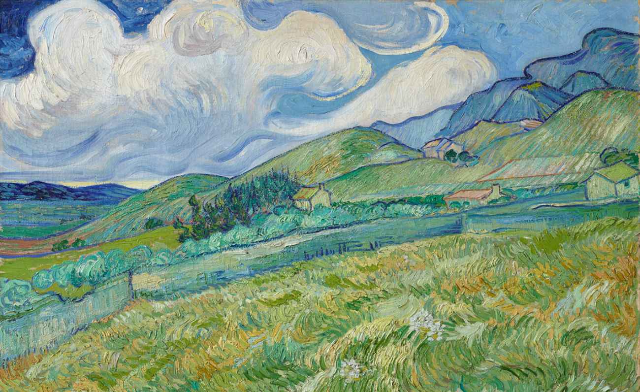 - Vincent van Gogh, Paesaggio a Saint-Rémy, 1889, olio su tela, cm 70,5 x 88,5. Ny Carlsberg Glyptotek, Copenaghen, SMK 1840; prestito a lungo termine dalla National Gallery of Denmark di Copenaghen