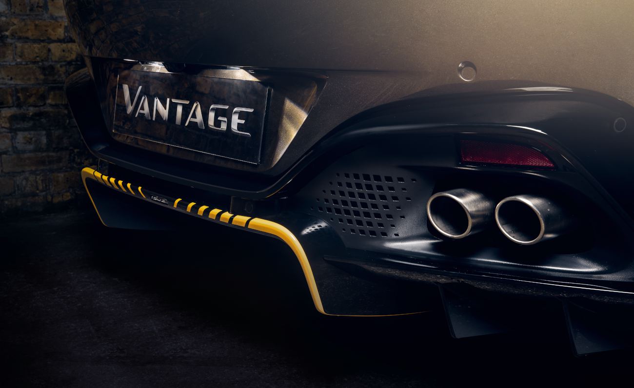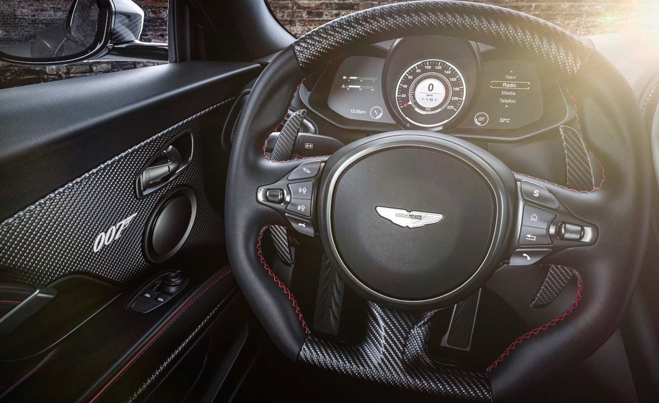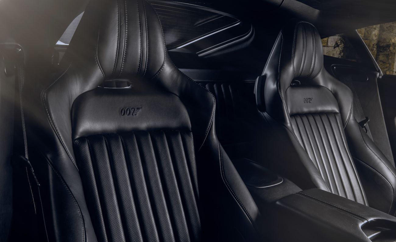 La vettura sfoggia inoltre una speciale vernice esterna Ceramic Grey con tetto, calotte degli specchietti, splitter, diffusore e Aeroblade IITM posteriore in fibra di carbonio di colore nero. Questa edizione speciale presenta anche un esclusivo badge per il parafango, rifinito in cromo e smaltato nero, con una lamina in acciaio argentato inossidabile siglata 007 applicata allo spoiler posteriore. L’interno del veicolo, rivestito in pelle nera, è rifinito da lampi di colore rosso che definiscono il profilo dei sedili.
