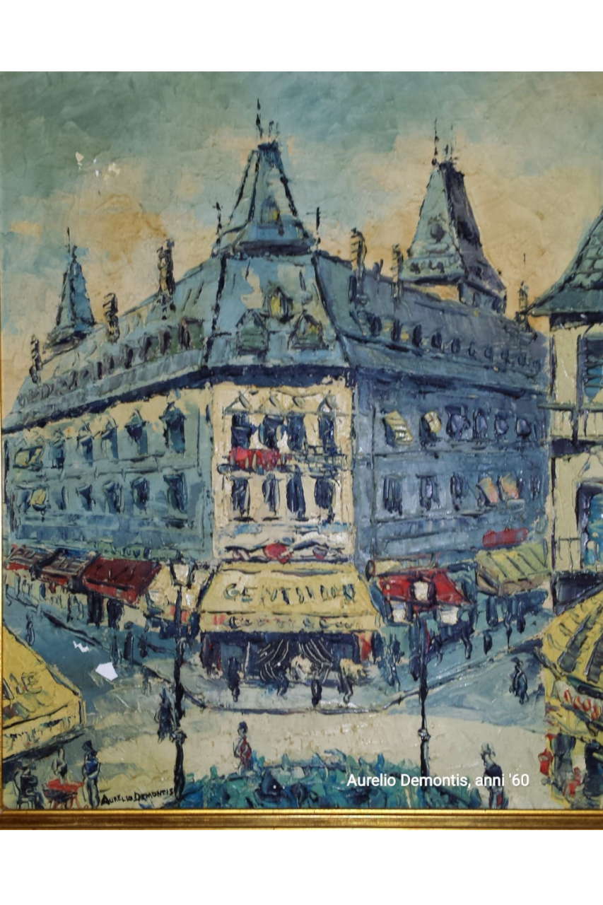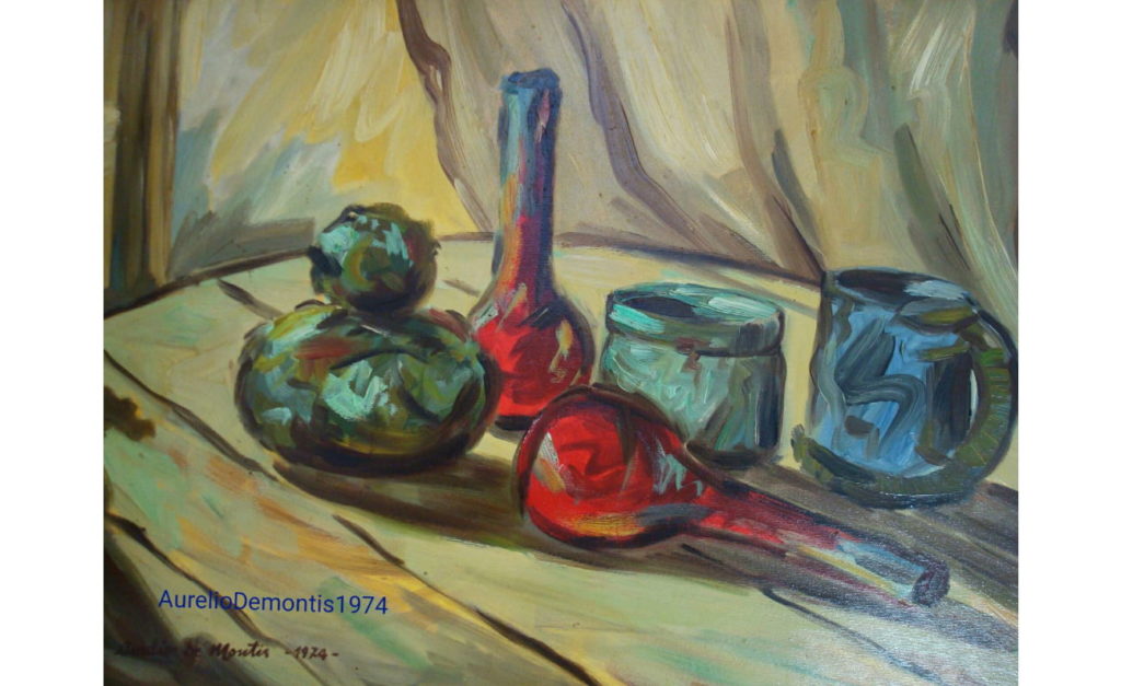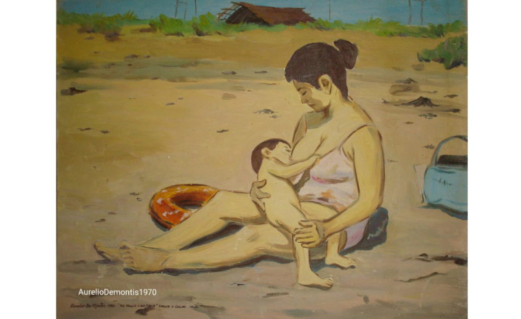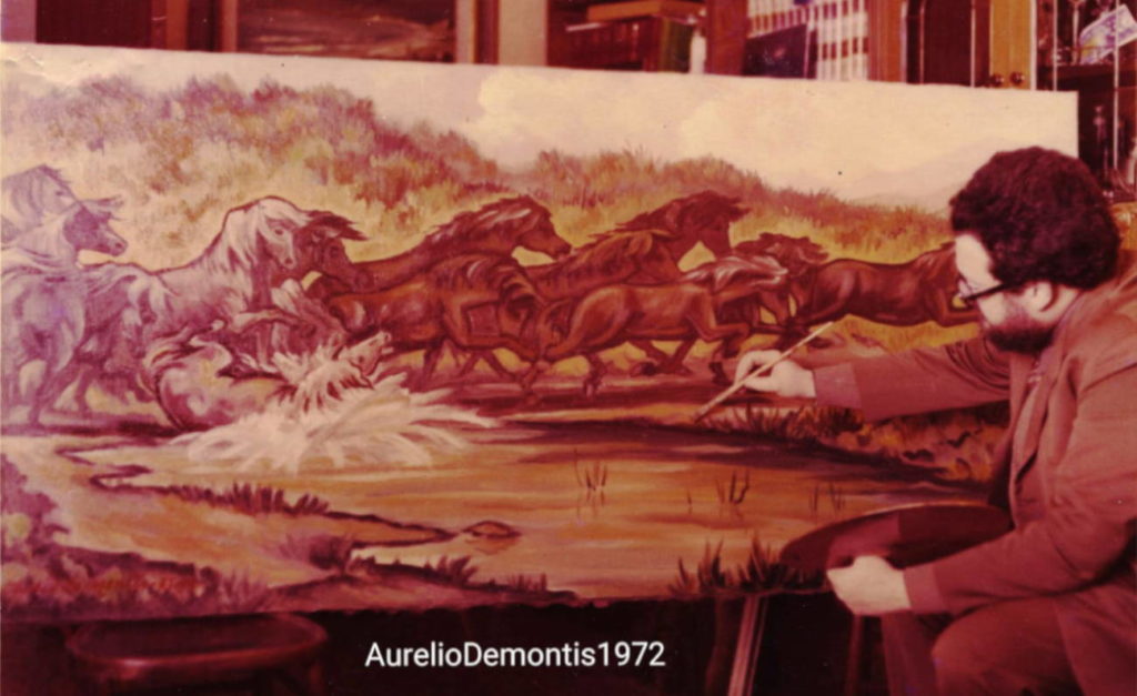 Aurelio Demontis è stato un pittore e un vignettista sardo, campione regionale di sollevamento pesi massimi negli anni Sessanta, che nel ‘63 realizza i primi cartoni animati in Sardegna. Da genitori grossisti di frutta, lavora sodo alla costruzione della sua identità leggendo molta stampa politica, con un interesse particolare per tutto ciò che parla dell’Unione Sovietica, s’interessa ai maestri impressionisti come Monet, Cezanne e Utrillo e nel 1961 parte per Milano dove lavora come tornitore, disegnatore per una fabbrica di confezioni per bimbi, magazziniere e cartellonista nei supermarket. Dipinge la vecchia Milano industriale, nebbiosa tra i suoi navigli, conosce diversi pittori e partecipa ai dibattiti sull’arte e alle mostre dei maggiori maestri contemporanei. Rientrando a Cagliari si concentra sul lavoro di cartellonista, disegnatore e vignettista; intorno al ‘63 realizza con due amici pittori alcuni filmini a cartoni animati: saranno i primi in Sardegna. Contemporaneamente continua a creare opere a olio e ad acquerello che espone in numerose mostre a Cagliari, la Maddalena, Lanusei e Nuoro. Nel 1966 dipinge vignette politiche sulla carrozzeria bianca della sua Fiat 500, cosa che gli consente di divenire molto popolare in città, poi nel 1967 sposa Dolores Demurtas, la scultrice contemporanea esponente di uno scenario artistico sardo che da locale è divenuto internazionale.