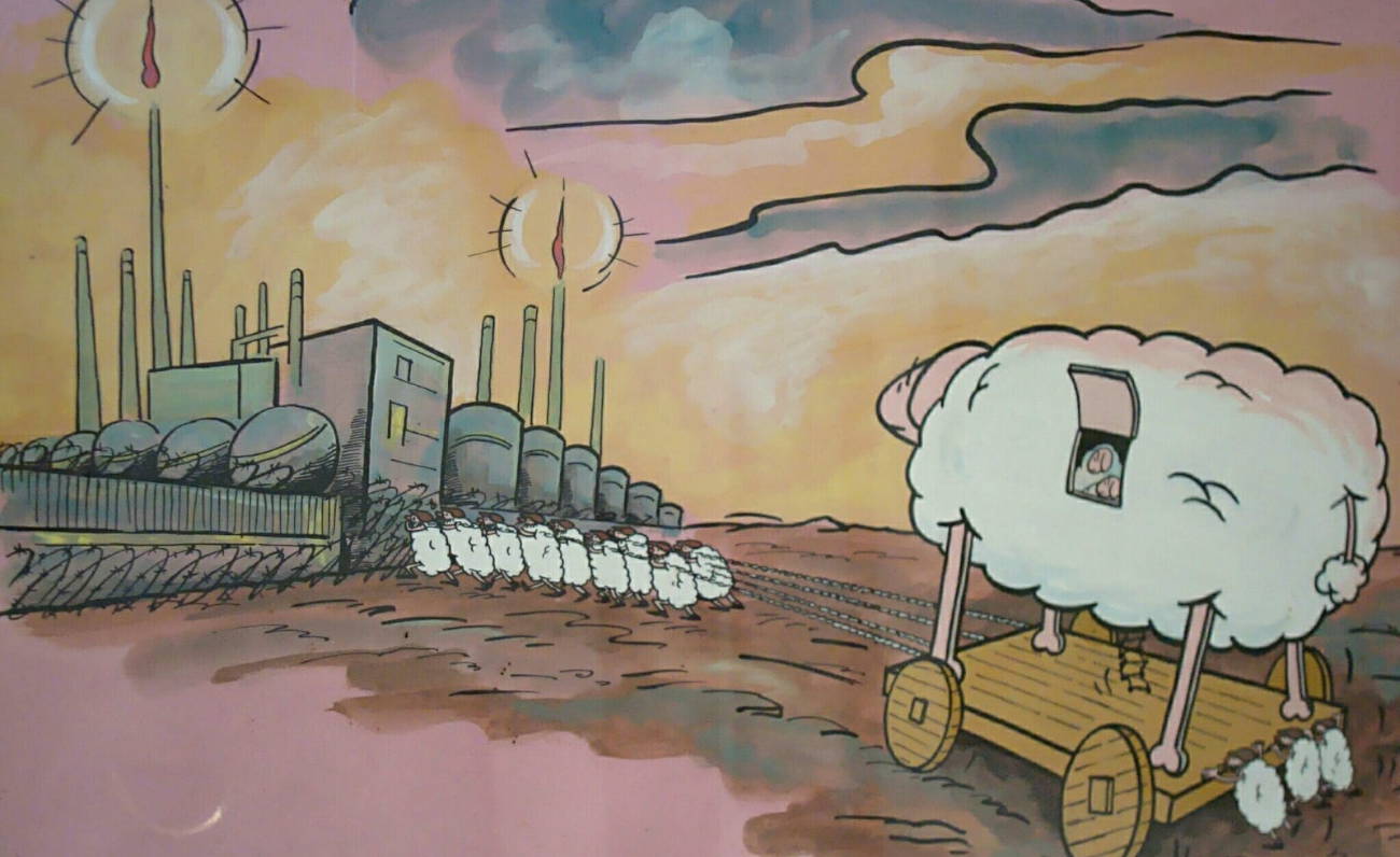 La sua pecora, disegnata con uno sportello sul vello come il cavallo di Troia, diventa il simbolo di un nuovo insediamento ideologico, di un sovrappensiero sardo pop che in quegli anni farà saltare i tavoli del festival della satira previsto in Sardegna. Nella rappresentazione popolare ed esilarante che fa del consiglio regionale interamente costituito da pecore, il presidente ha il classico copricapo sardo mentre gli altri sono rappresentati con la piccola coppola dotata di visiera.