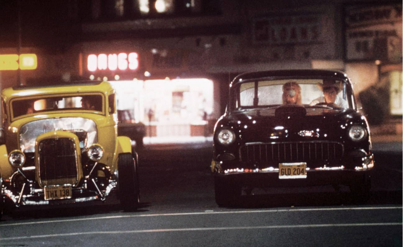 Il film “American Graffiti” , diretto da George Lucas e uscito nel 1973, è una riflessione sulla gioventù americana degli anni Cinquanta-Sessanta, una pellicola di culto generazionale con una colonna sonora eccezionale. Tra le innumerevoli auto, tutte americane e “pinnate” quella che rimane più impressa è la Ford Coupè 1932 gialla di John, Milner, (Paul LeMat) il meccanico duro “dal cuore tenero”, la classica vettura che i ragazzi compravano per trasformarla in Hot Road. Erano vetture estremamente customizzate, senza parti non ritenute necessarie, come il cofano e motori originali rimpiazzati da altri potenziati. E così si passava da un V8 da 3,6 litri di circa 66 Cv che la spingeva al massimo ai 122km/h a cilindrate simili o superiori con per lo meno il triplo di Hp e velocità molto più sostenute. La particolarità dell\'auto usata in American Graffiti è la targa THX 138 si tratta di una citazione, li sigla si riferisce al titolo del primo lungometraggio di Lucas. Lo stesso modello, ma di colore diverso, da il titolo al brano Little Deuce Coupe, contenuto nell\'omonimo disco inciso dai dei Beach Boys nel 1963.