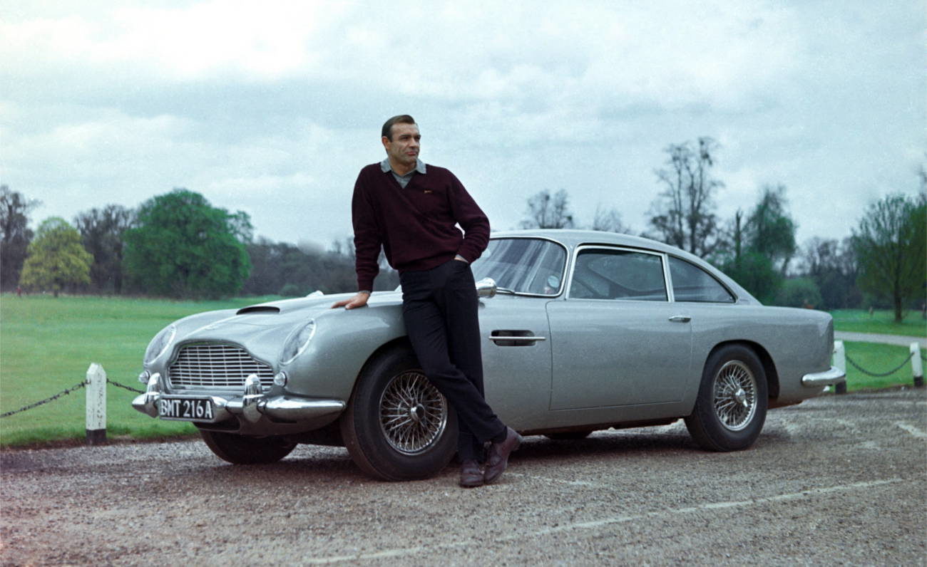 È stata la compagna a cui James Bond è stato più fedele a partire dal film Goldfinger (1964) diretto da Guy Hamilton Evoluzione della DB4 era una coupè a 2 porte, 2+2 posti, 4000cc di cilindrata, 6 cilindri in linea e 286cv, una moderna trasmissione manuale ZF a 5 rapporti e 3 carburatori SU che la spingevano a oltre 240km/h mentre l\'accelerazione da 0-100 Km/h arriva in 82. Per il raffinato abitacolo si usavano i migliori e più raffinati materiali. La versione per Bond poteva contare anche su altre particolarità, come il sedile passeggere eiettabile e le mitragliatrici...