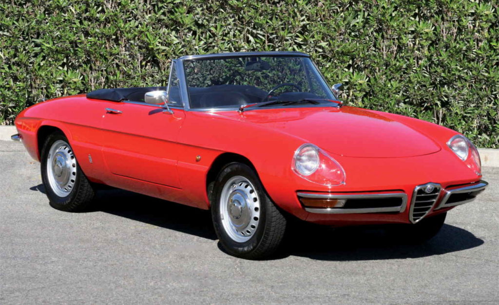 È la rossa vettura guidata da Benjamin Braddock (Dustin Hoffman) nel film “Il laureato” (1968) di Mike Nichols e suggeriva un\'idea di ribellione, gioventù e voglia di fuga. Elegante e sportivissima ha rappresentato visivamente il cambiamento nel modo di intendere le macchine cabriolet. Disegnata da Pininfarina e prodotta dal 1966, l’Alfa Romeo Spider Duetto, soprannominata anche \'osso di seppia\' per la forma, colpiva per la linea bassa quasi rasoterra e la coda che evocava la poppa delle imbarcazioni. Disponibile in diverse motorizzazioni la versione 1.6, scattava da 0 a 100 km/h in 11,5 secondi e toccava i 185 km/h.