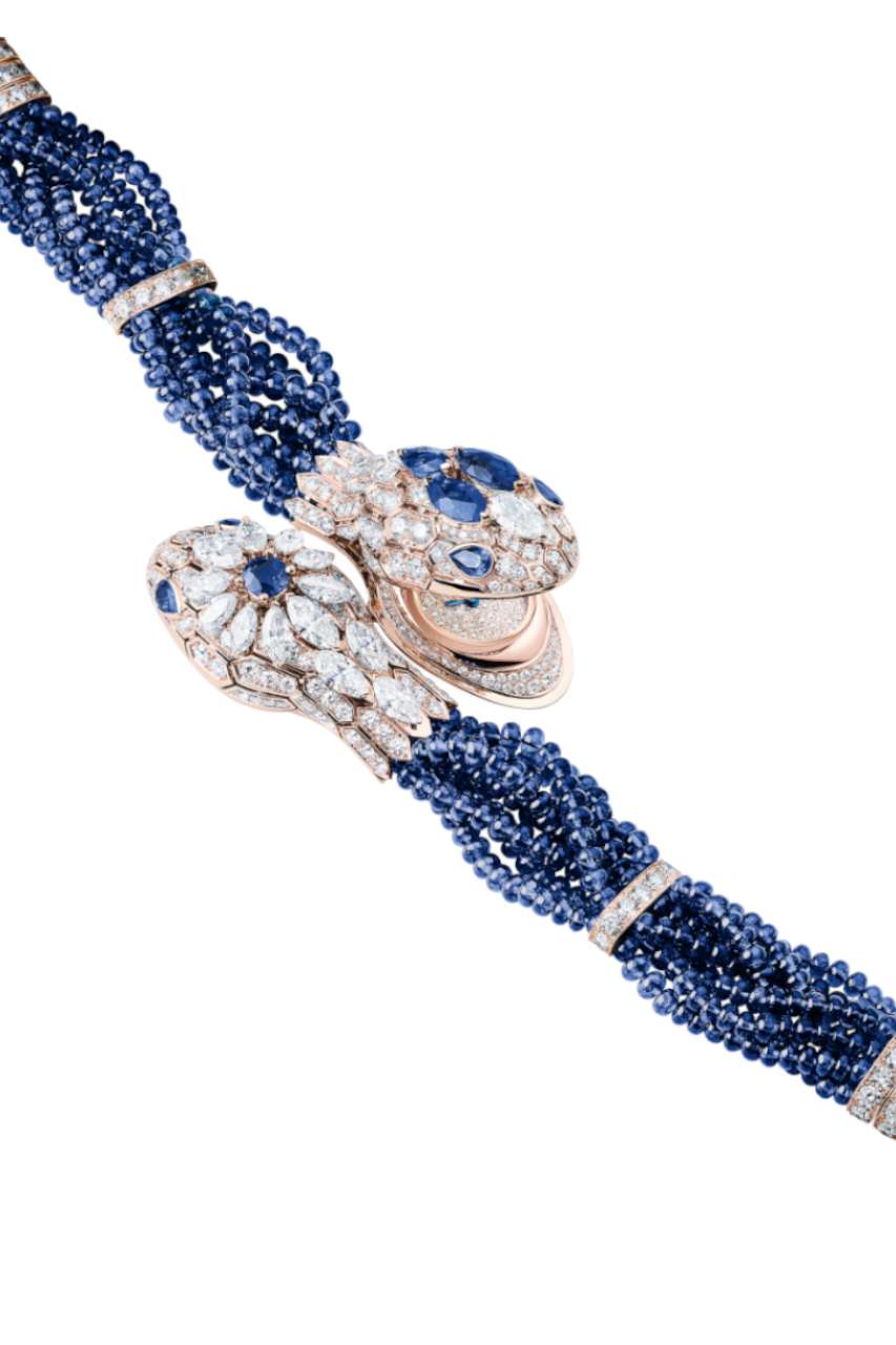 La terza creazione, l\'orologio segreto Serpenti High-Jewellery Baroque Pearls, attinge alla teatralità del barocco evocando le perle e i pizzi strutturati che adornavano gli abiti dell\'epoca, donando un senso di complessità al loro disegno.