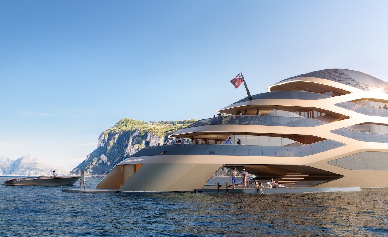 Altre dotazioni di base prevedono la suite armatoriale di 100mq con terrazza personale di 140mq dotata di piscina e un elipad touch&go.