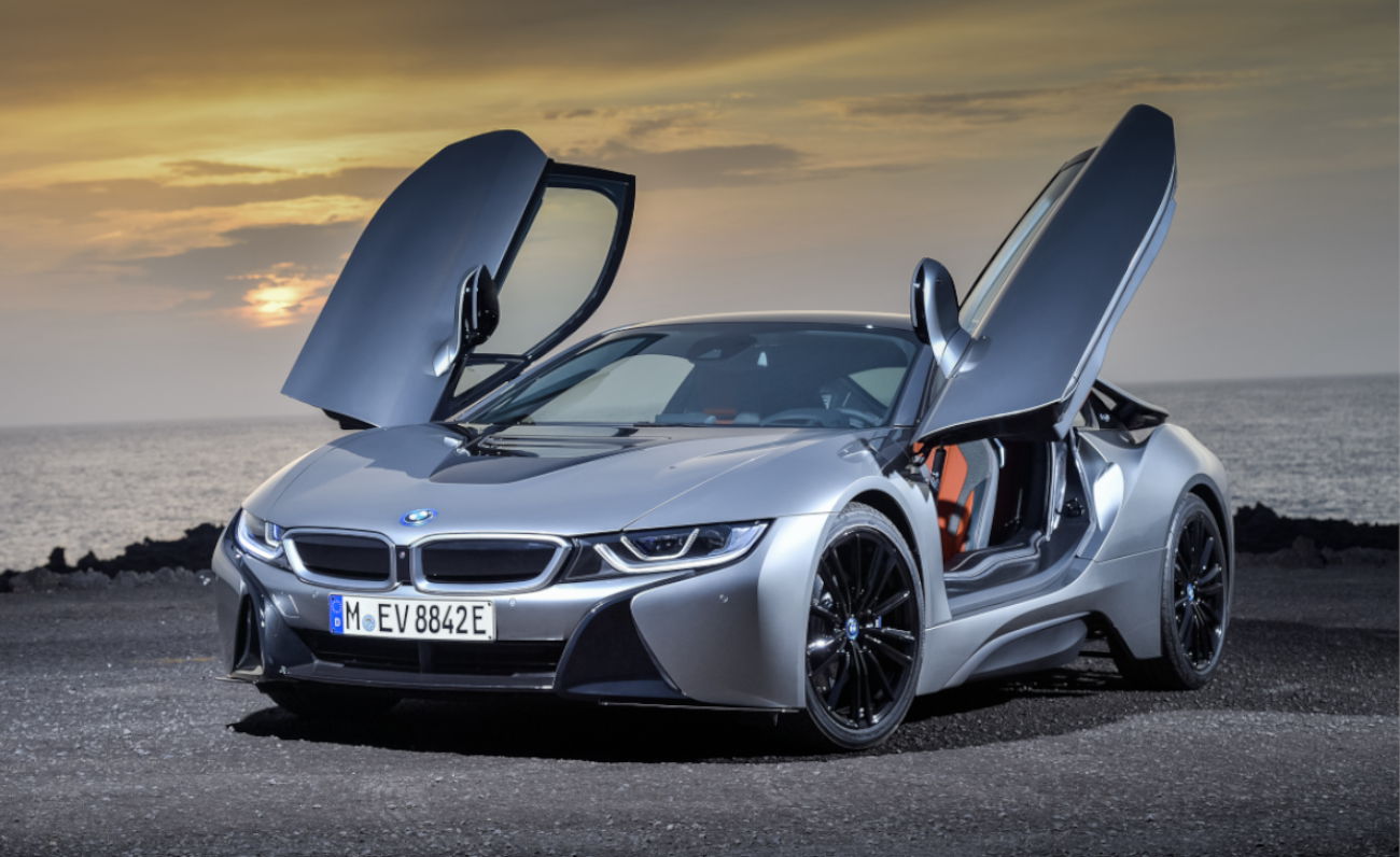 Ecofriendly ma potente la BMWi8 è una delle ammiraglie della BMW. Uscita nel 2015 anche in versione roadstar – seguirà un modello con piccole modifiche nel 2018 - è un veicolo di alta gamma dal cuore sportivo. L\'unità propulsiva è costituita da un motore elettrico sincrono dalla potenza di 131cv con 250Nm di coppia abbinato ad un propulsore tre cilindri da 1.500cm³ TwinPower Turbo a iniezione diretta dalla potenza di 231c e 320 Nm di coppia, per un totale di 362cv. L\'uso di un alternatore da 15 kilowatt aiuta a cancellare la latenza che si ha quando si avvia il motore termico. Il gruppo elettrico spinge l\'assale anteriore, la parte posteriore è un mix tra motore termico e elettrico. A bassi regimi il motore è assistito da un piccolo motore elettrico da 20cv. Insieme questa propulsione garantisce una velocità massima di 250km/h e un\'accelerazione da 0 a 100km/h in 4,4 secondi.