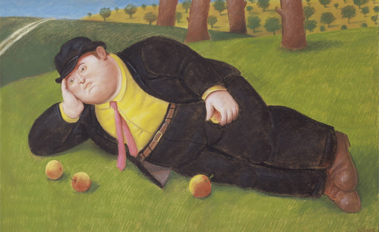 - Fernando Botero, Reclined man, 2002, Pastello su tela 69 x 103 cm, Collezione privata dell’artista