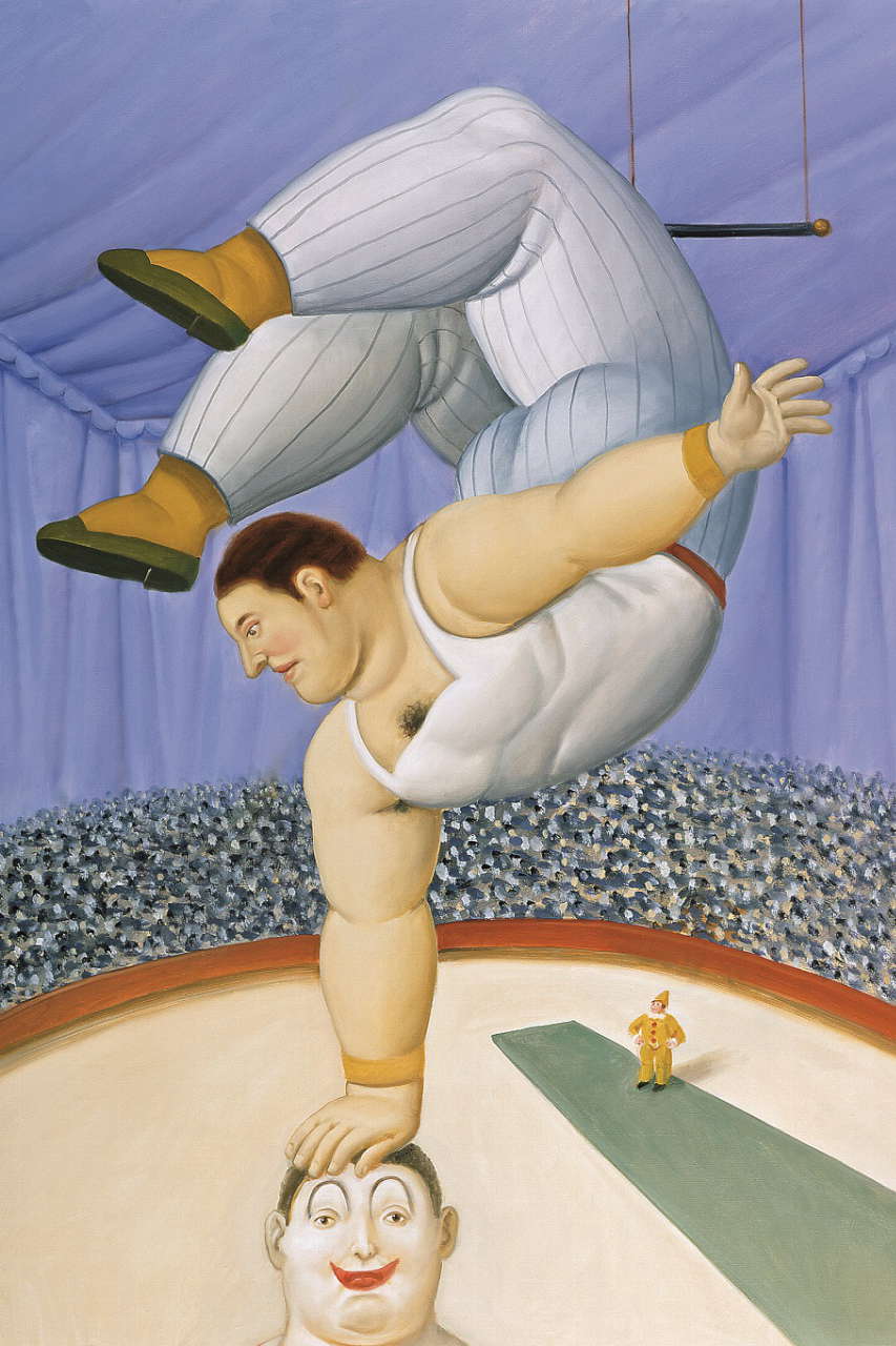 Nel 2007, mentre si trova in Messico, un piccolo circo di provincia attira la sua attenzione e gli riporta alla memoria i circhi dell’infanzia che sostavano alcuni mesi a Medellìn. È da quel momento che l’artista decide di confrontarsi con il tema circense, che in passato aveva già affascinato pittori come Picasso, Seurat, Renoir, Chagall e Léger. Funamboli, trapezisti, contorsionisti rappresentano la filosofia di una vita perennemente in bilico, la cui unica certezza sembra essere la scenografia di un tendone provvisorio; Botero resta ammaliato dalle possibilità pittoriche offerte dalla fisicità e dalla flessibilità delle figure circensi, dalle quali traspare un fascino malinconico e poetico. Sospesi tra il reale e l’onirico, i personaggi restano in stabile equilibrio sul filo della bellezza.