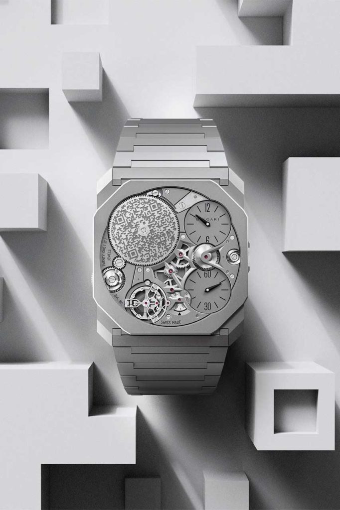 Sulla ruota a cricchetto del bariletto, è inciso un QR code, perché ognuno dei dieci orologi Octo Finissimo Ultra sarà consegnato con un’esclusiva opera NFT che, grazie alla tecnologia blockchain, ne garantisce l\'autenticità e l\'unicità. Al contempo, ciascun possessore dell’orologio potrà accedere ad un universo digitale dedicato.