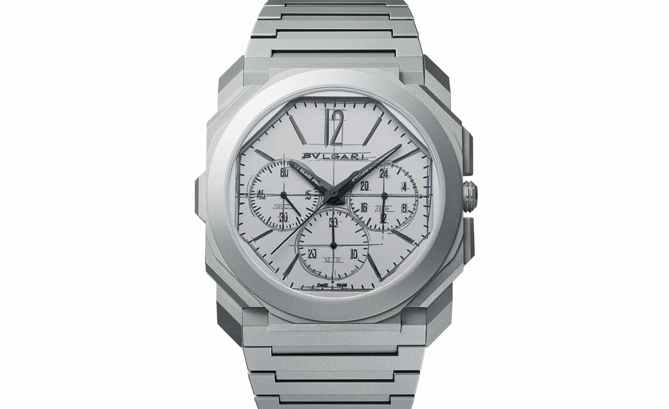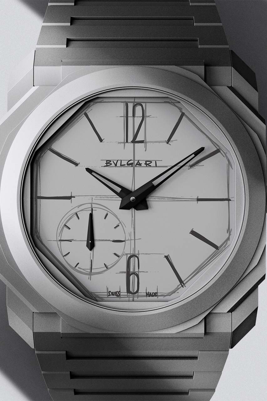 La cassa, il quadrante e il bracciale degli orologi sono realizzati in titanio ultraleggero, materiale che conferisce loro un look moderno ed elegante. Le linee decise della cassa, ispirate ai capolavori dell’architettura italiana, evocano le radici romane di Bulgari, mentre i giochi di luce che si creano tra le sue sfaccettature catturano lo sguardo.