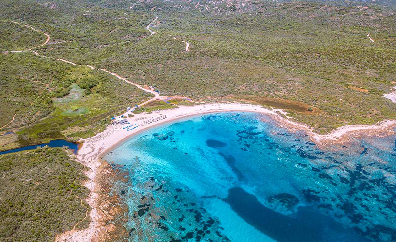 La bella Cala Razza di Juncu – o Razza di Giunco, dal canneto di giunchi che cresce poco distante – è una piccola spiaggia immersa nella macchia mediterranea della Gallura. Una linea di sabbia bianca e dorata che separa il verde della vegetazione e le sfumature turchesi tipiche di questo angolo di Sardegna. In questa zona il mare è famoso per essere limpido e caratterizzato da fondali riccamente popolati, tanto che è possibile passeggiare dentro l’acqua e ammirare i pesci che nuotano placidamente vicino alla riva. Perfetta sia per lo snorkeling sia per surf e windsurf, la spiaggia si presta anche ai più piccoli per via del suo basso fondale, l’ideale per muovere i primi passi nel bagnasciuga in tutta sicurezza.