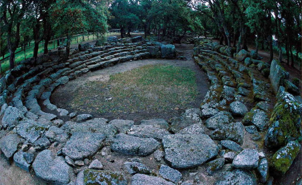 Accanto, si può trovare un anfiteatro formato da sei gradinate, usato per funzioni religiose o decisioni di tipo politico, come l’ordalia, dove era la divinità a giudicare l’atto di un uomo. Negli anni sono stati rinvenuti altri templi: uno a forma rettangolare, uno a heroon, e due definiti a mégaron, con una pavimentazione in argilla. Ma ciò che colpisce in particolare è il resto di un labirinto a spirale, considerato con molta probabilità la capanna di un sacerdote. A conferire un tocco in più sono le capanne a forma circolare, alcune ritrovate dentro la foresta.