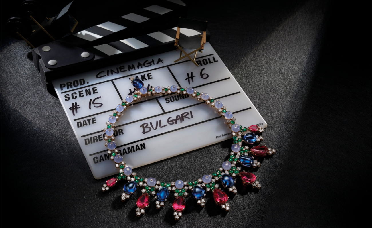 Per rendere omaggio a questa liaison, il gioielliere romano oggi combina colori audaci, tagli insoliti e una manifattura d’eccellenza per la sua ultima collezione, Cinemagia.
