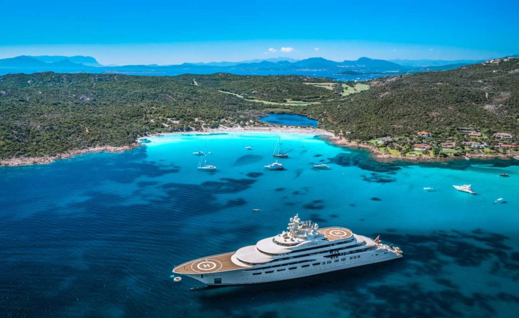 Qualche secondo più tardi, neanche a farlo apposta, si presenta uno degli spettacoli più straordinari: la spiaggia del Grande Pevero con sua maestà il Dilbar, considerato lo yacht più grande al mondo, una meraviglia della nautica ancorata in rada dove il mare, nonostante la sua profondità, sfoggia una trasparenza che ha davvero dell\'incredibile. È in questo momento che si crede di non poter ormai vedere niente di più bello.