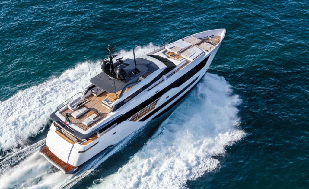 Un nuovo orizzonte di perfezione, fatto di linee pulite e rigorose e grandi spazi di una raffinatezza essenziale, per il massimo comfort dell’armatore. Tutto unito a una transizione naturale tra gli spazi, già notevoli dove la luce è protagonista e crea un’opera piena di emozioni. È il CS Customline 106\', ultimo nato sotto il marchio di yacht di lusso del gruppo Ferretti. Una vera opera d\'arte che colpisce per la struttura dello scafo, elegante ma deciso che evidenzia il profilo filante e potente dove linee tese corrono da poppa a prua dando vita a una emozionante alternanza materica e cromatica di superfici strutturali chiare e vetrate scure. Ampie e generose finestrature ne alleggeriscono ulteriormente la forma, concept replicato in coperta dove le vetrate cielo terra offrono un contatto diretto col mare, ampliato ulteriormente dalla loro forma convessa.