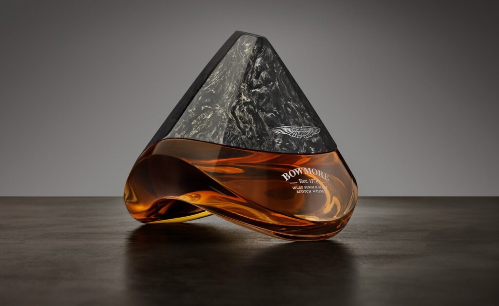 Il design avveniristico del decanter è ispirato alla tecnica giapponese Mokume-Gane, che consiste nell’unire diversi tipi di metalli attraverso la forgiatura e la saldatura a caldo. Il top del decanter è realizzato in fibra di carbonio, simile a quella utilizzata nei modelli ad alte prestazioni di Aston Martin, mentre il design bilancia forme naturali e antropiche, riflettendo così l\'equilibrio fondamentale nel design delle auto. La forma, invece, è stata realizzata con l\'utilizzo di tecnologie avanzate come la stampa 3D e la modellazione in argilla, seguendo i principi di equilibrio e forma ottimale che sono parte del DNA del design di Aston Martin. Il contenuto è tanto speciale quanto il contenitore: l’interno cela un whisky single malt invecchiato 52 anni, frutto delle annate più iconiche di Bowmore.