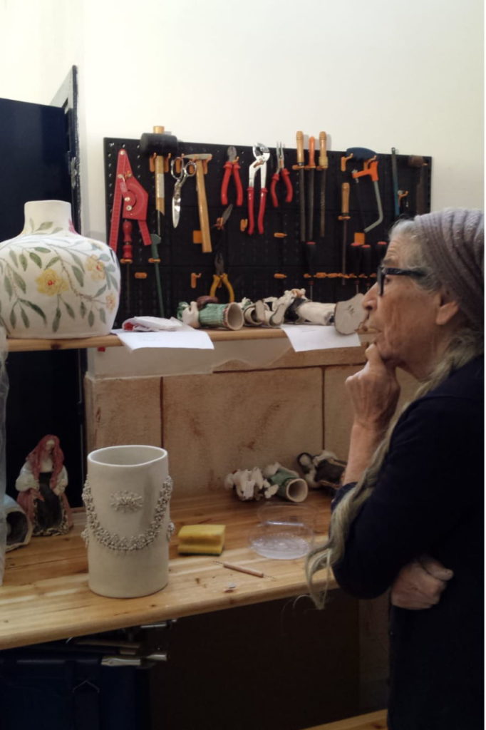 Dolores Demurtas non parla quando discorre, ricorda mentre dice “non mi ricordo” e intanto lancia messaggi che sembrano arrivare dal futuro. Parla di lei stessa e di quella sua famiglia dalle mani intrise di argilla, sposta concetti antichi, indiscutibili; insomma per lei quello che noi oggi chiamiamo innovazione è sempre stato semplicemente il suo dovere, un lavoro serio condotto con la gioia di chi sale su una giostra luminosa e velocissima. Dolores è una madre senza paura, ha messo le sue bambine dentro i magici profondissimi spazi dell’arte e oggi Angela e Lavinia Demontis hanno una velocità pazzesca, sognano la sostenibilità di un mondo e ci lavorano sodo. Due artiste che pensano alla grande perché hanno imparato presto come rivolgersi al pianeta.