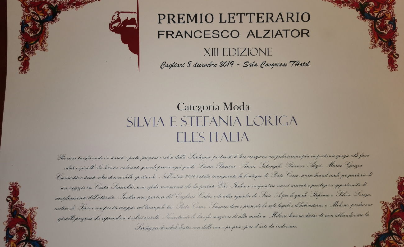 E anche quest’inverno le sorelle Loriga, Silvia e Stefania, collezionano riconoscimenti guadagnando tra l’altro anche la citazione del premio letterario Francesco Alziator intitolato alla memoria dell\'illustre scrittore cagliaritano. «Sentirsi parte riconosciuta di una regione così vitale e produttiva è per noi motivo di grande onore – dichiara Silvia Loriga – non chiediamo di meglio ora che il nostro marchio sta circolando bnel mondo e parla di una moda tutta italiana a partire dalle suggestioni della Sardegna.»