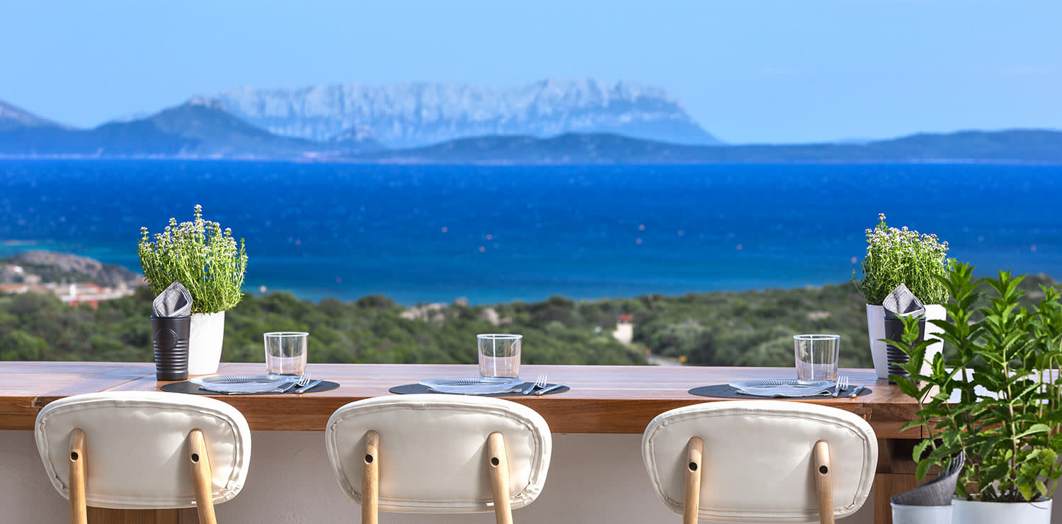 La Terrazza Frades displays an outdoor terrace dotted with tables with breathtaking panoramic views of the cerulean sea, the green vegetation and the hills in the back, creating a relaxing atmosphere to have a drink or dinner. The menu has been creatively designed following the Sardinian flavours by the owner and the chef Roberto Paddeu as the grilled “culurgiones”, an exquisite apertizer to be enjoyed during the aperitif.
