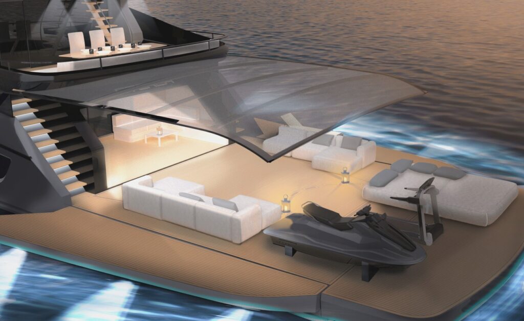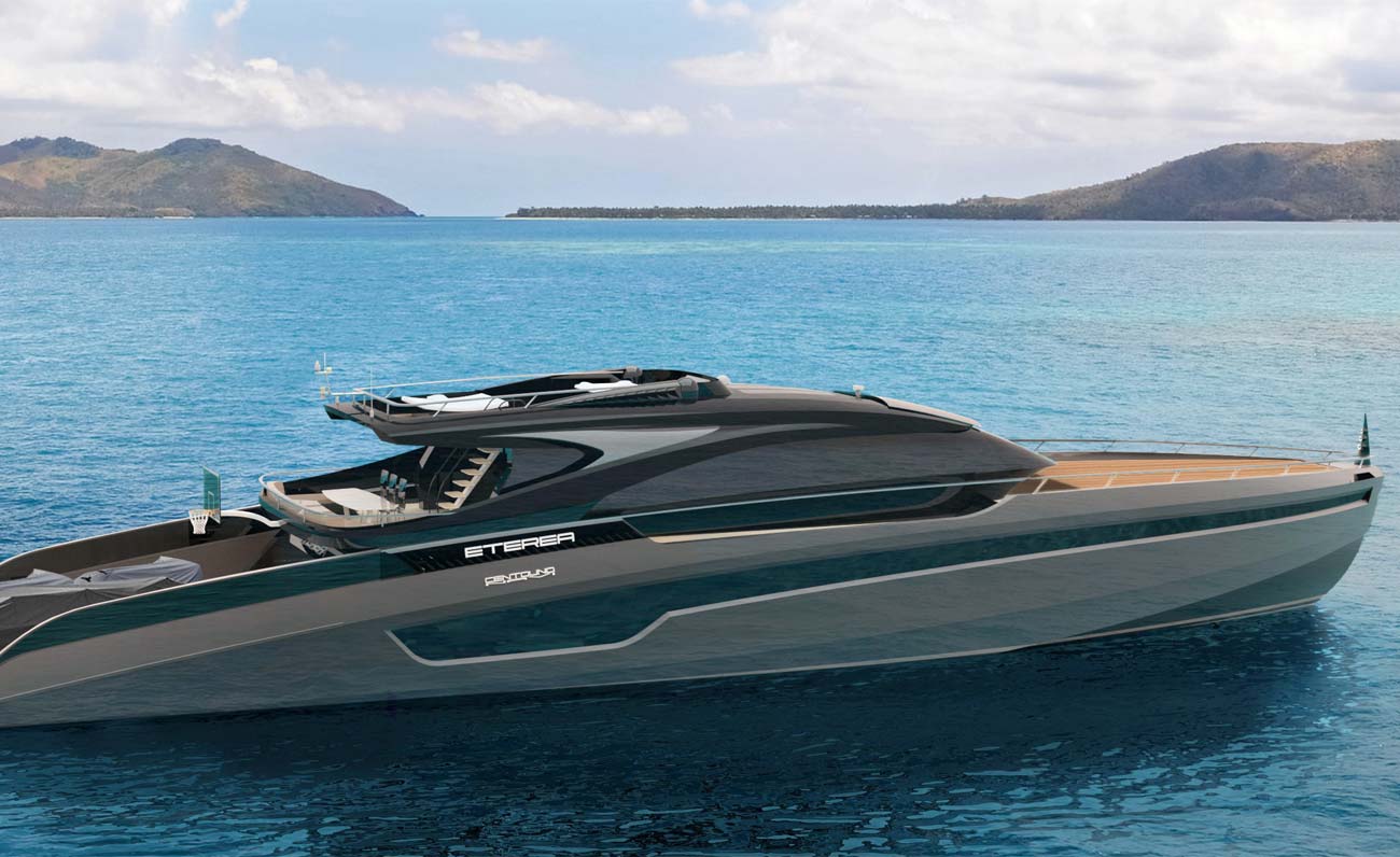 Originale e sostenibile, Eterea, il nuovo 40 metri del cantiere italiano Centounonavi è un\'imbarcazione progettata per mantenere un forte legame con il mare, come del resto avviene per tutti i progetti realizzati della compagnia. «Nel progettare ETEREA ci siamo posti due obiettivi precisi: avere una linea molto pulita e garantire agli ospiti una vita a bordo a stretto contatto col mare» ha dichiarato Manuela Lucchesi, designer e fondatrice di Cenotunonavi «Abbiamo quindi pensato a un grande spazio poppiero quasi a livello dell’acqua con le murate abbattibili.» ha aggiunto Marco Arnaboldi, ingegnere navale e co fondatore del marchio «Qui possono trovare posto numerosi toys, un tender fino a 9 m di lunghezza ma, come da precisa richiesta di un armatore americano, c’è lo spazio anche per allestire un campo da pickleball! Una cura particolare è stata poi dedicata a rendere fly e antenne armonizzate con il profilo della barca».