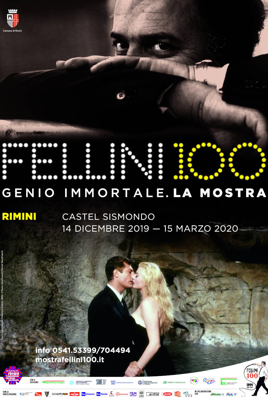 A 100 anni dalla sua nascita, Rimini celebra il regista, nato nel capoluogo romagnolo e a cui era legato da un rapporto di amore-odio, con Fellini 100 Genio immortale, dal 14 dicembre fino al 15 marzo 2020, progettata da Studio Azzurro di Milano, promotore il Comune di Rimini, una grande mostra ospitata nelle sale di Castel Sismondo, l\'antica residenza dei Malatesta, signori di Rimini.