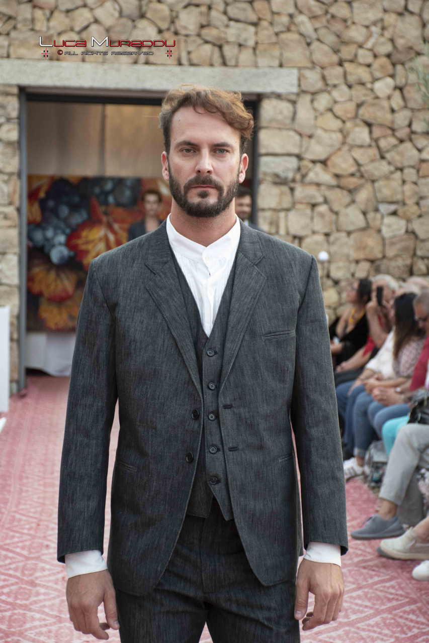 Il figlio di Paolo Modolo, il fondatore della sartoria che da Orani fa parlare il mondo dell\'abito tradizionale sardo, sembra davvero figlio d’arte in questa sua gran voglia di raccontare come fa il tifo per la sua terra e non solo per il comparto moda. Ama lo scrittore compaesano Salvatore Niffoi e decide di aprire la sfilata di quest’autunno in Barbagia proprio leggendo alcuni passi di Pantumas, libro edito da Feltrinelli, in cui si descrive l’abbigliamento di una Sardegna arcaica.