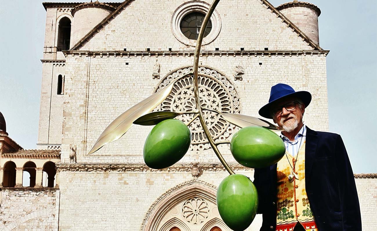 Una delle ultime installazioni spettacolari del caposcuola del nuovo realismo sempre più pop è stata ospitata ad Assisi la scorsa Pasqua: 140 olive di bronzo sono spuntate dal prato davanti alla Basilica di San Francesco per lanciare al mondo un messaggio di pace e speranza.