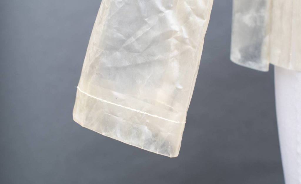 Con lo stesso spirito innovativo, la designer e ricercatrice newyorkese Charlotte McCurdy ha presentato nel 2019 al Cooper Hewitt Museum di New York il suo progetto “After Ancient Sunlight”, un impermeabile carbone negative in materiale simil plastico, prodotto a partire da alghe e altri componenti biodegradabili. Come il bio-garment, l’impermeabile è capace di fotosintesi, e deve il suo nome al rapporto tra i combustibili fossili e le alghe da cui derivano. «In passato eravamo una società che soddisfaceva tutti i suoi bisogni attraverso l\'energia solare», ha spiegato McCurdy alla CNN «Adesso siamo diventati dipendenti dal petrolio, questa energia solare accumulata e antica. Ma possiamo ricostruire la nostra società dalla vera luce solare.». La ricercatrice spera così di spostare l’attenzione sulla diminuzione di CO2 nell’aria e di come la produzione di tessuti a base di alghe potrà essere utilizzato per un’industria tessile totalmente ecologica.