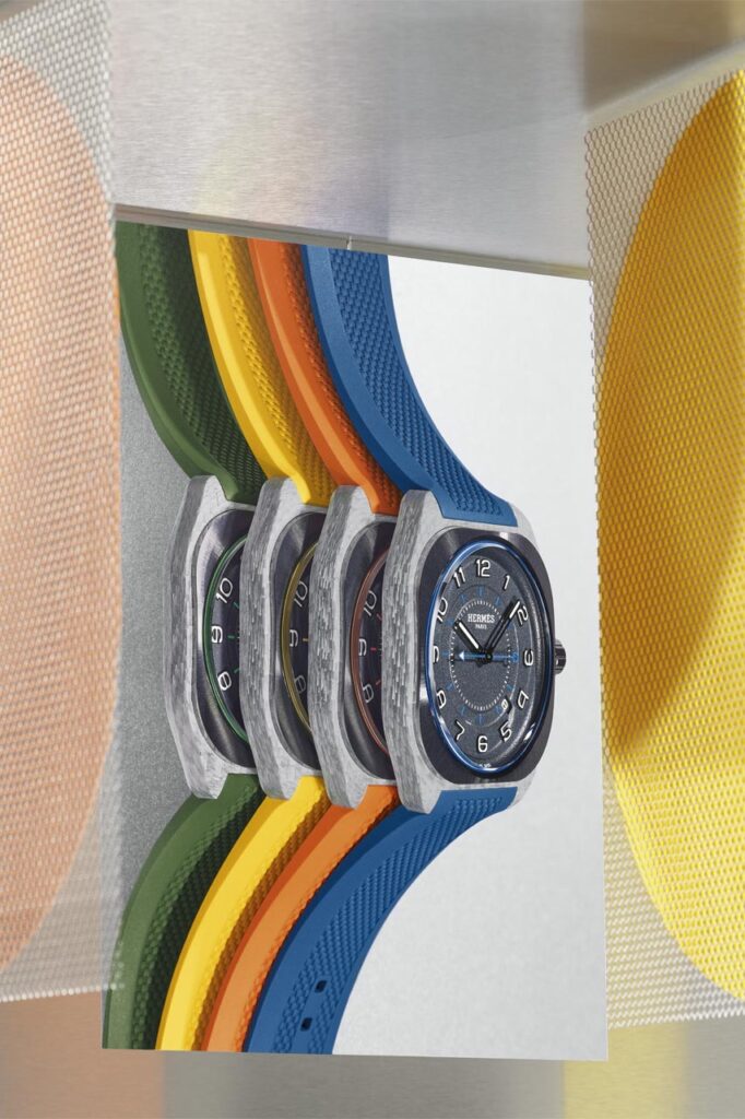 Nel 2021 Hermès ha debuttato con la nuova collezione di orologi H08. Concepito dal direttore creativo di Hermes Philippe Delhotal, l’H08 presentava un look sportivo con un’interessante cassa a cuscino che lo rendeva comodo da indossare tutti i giorni. A Watches and Wonders 2023 Hermès ha rivisitato la collezione con una serie di nuovi modelli, con nuovi materiali e un look rifrescato da quattro nuovi colori: blu, verde, arancione, giallo.