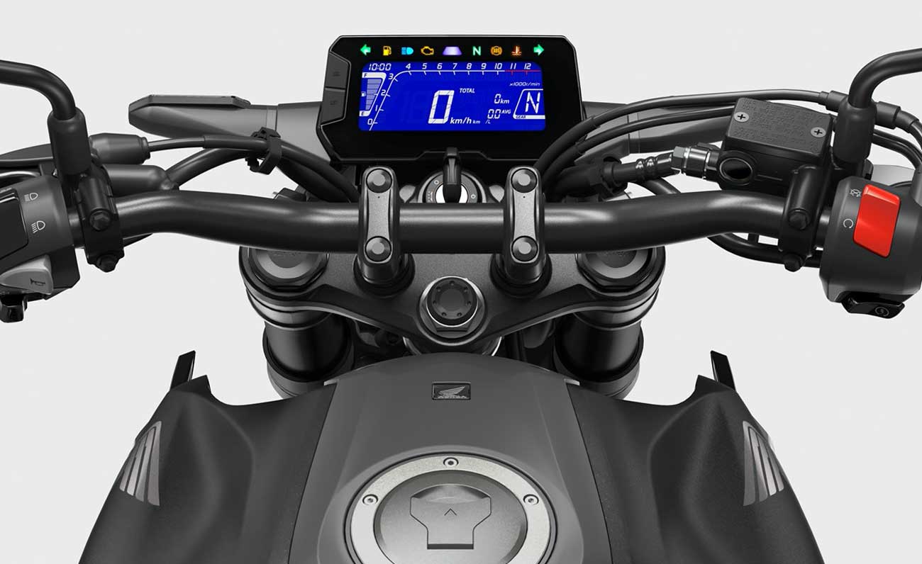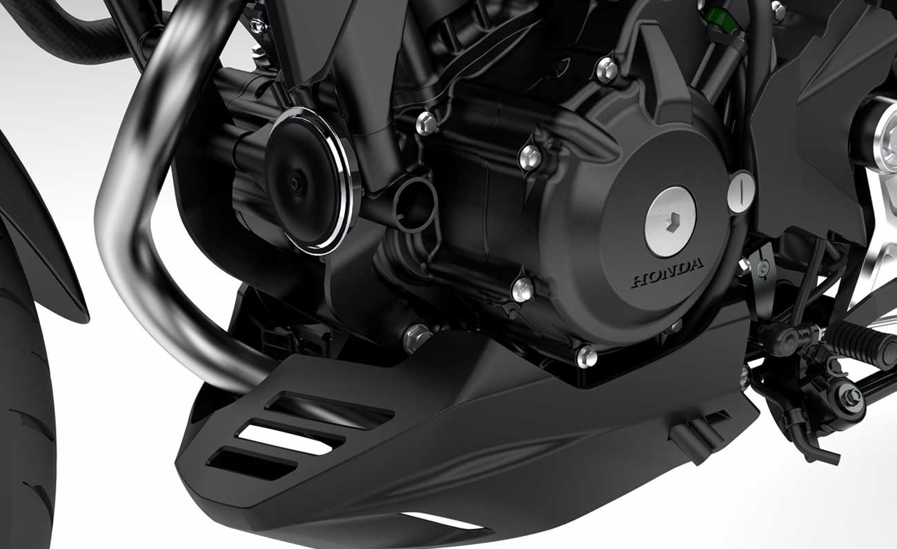 Questa nuova versione presenta, inoltre, diverse migliorie solitamente in dotazione a moto con cubatura maggiore. Tra queste il manubrio in acciaio a sezione differenziata e la strumentazione digitale LCD, che permette al pilota di controllare rapidamente tutte le informazioni riguardo velocità, contagiri e il livello del carburante. Il serbatoio ha una capienza di 10 litri e si trova tra i convogliatori superiori e le superfici delle sovrastrutture. Con un pieno, la CB300R può percorrere 300 km (consumi 30,2 km/h). Il motore monocilindrico della CB300R è a distribuzione bialbero con 4 valvole, raffreddamento a liquido e potenza massima di 31,1 CV (29,9 kW) erogata a 9.000 giri/min, mentre la sua coppia massima è di 27,5 Nm a 7.750 giri/min. Altra novità tra le aggiunte di questa versione è l’adozione della frizione assistita e con antisaltellamento, che evita perdite di aderenza della ruota posteriore durante le scalate. Sul lato destro, infine, è posizionato il tubo di scarico, dotato di terminale con fondello ridisegnato.