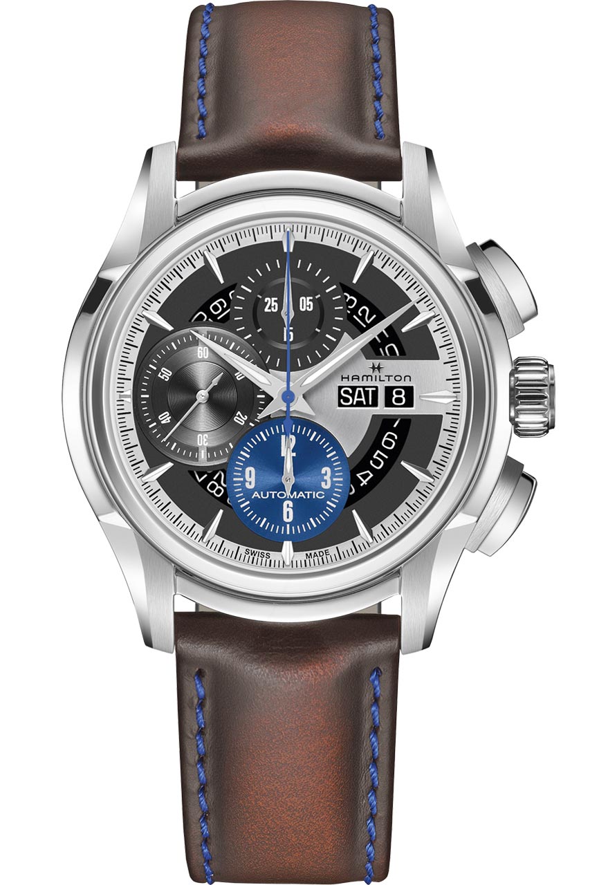 Grazie alla cassa rotonda girevole, il Jazzmaster Face 2 Face III può mettere due quadranti a disposizione di chi lo indossa: uno serve per la misurazione del tempo, con funzioni cronografiche, l’altro ha differenti scale di misurazione e consente la visione del movimento, il calibro cronografo automatico H-41 con riserva di carica di 60 ore.