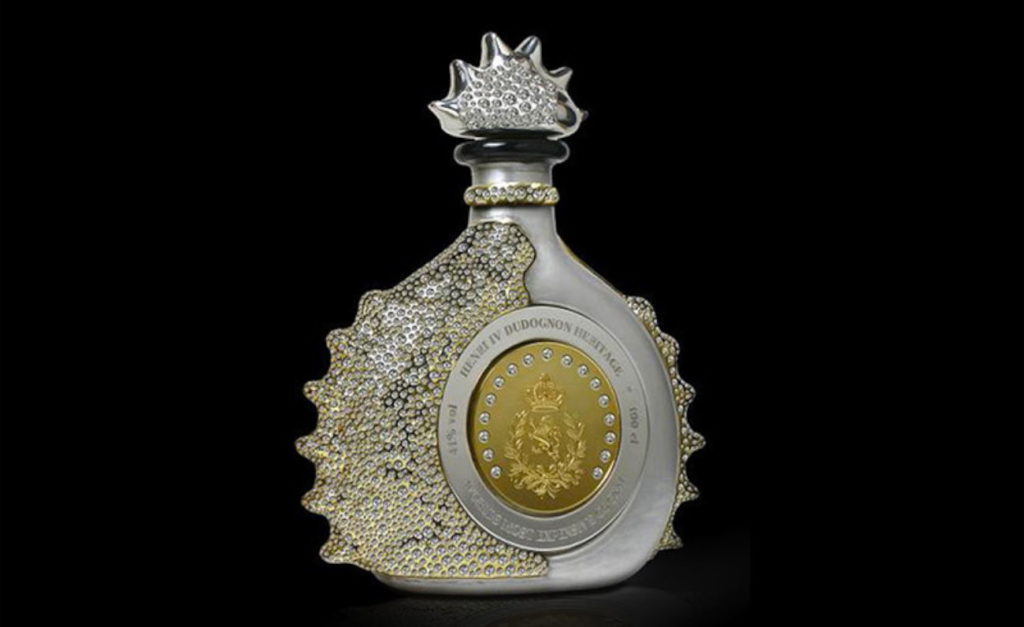 Invecchiato oltre 100 anni il cognac Henri IV Dudognon Heritage è il più costoso del mondo. Per la bottiglia, 41° alcolici e 100 cl - realizzata dal gioielliere Jose Davalos, in oro 24 carati e platino sterling ornata da 6.500 diamanti, peso di quasi 18 chili - bisogna pagare 2 milioni di dollari, quasi 1.800.000 di euro.