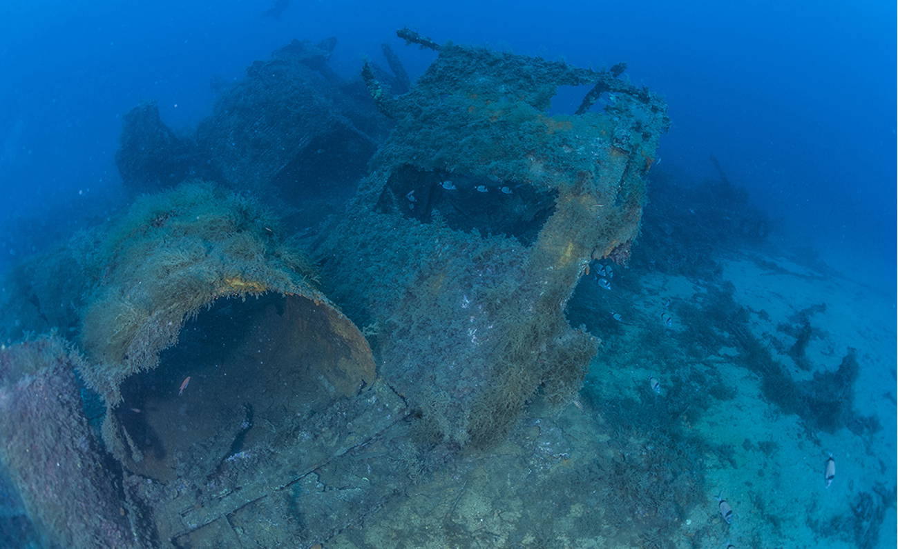 Oggi è possibile ammirare ciò che ne è rimasto a 36 metri di profondità, spiccano subito all’occhio l’elica, il grande motore e il la postazione del pilota, il cui elemento peculiare è il dipinto ancora visibile di una bandiera.
