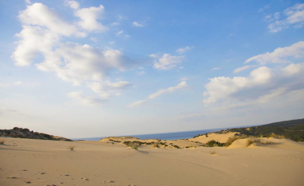 Qua a pochi passi dalle onde del mare si trova infatti un deserto di dune dorate, gli stessi grani d’oro che accomunano tutte le spiagge di questa zona ma che in questo spazio quasi esotico diventano vere e proprie distese penetrando verso l’interno per 2 chilometri e raggiungendo altezze di quasi 100 metri.