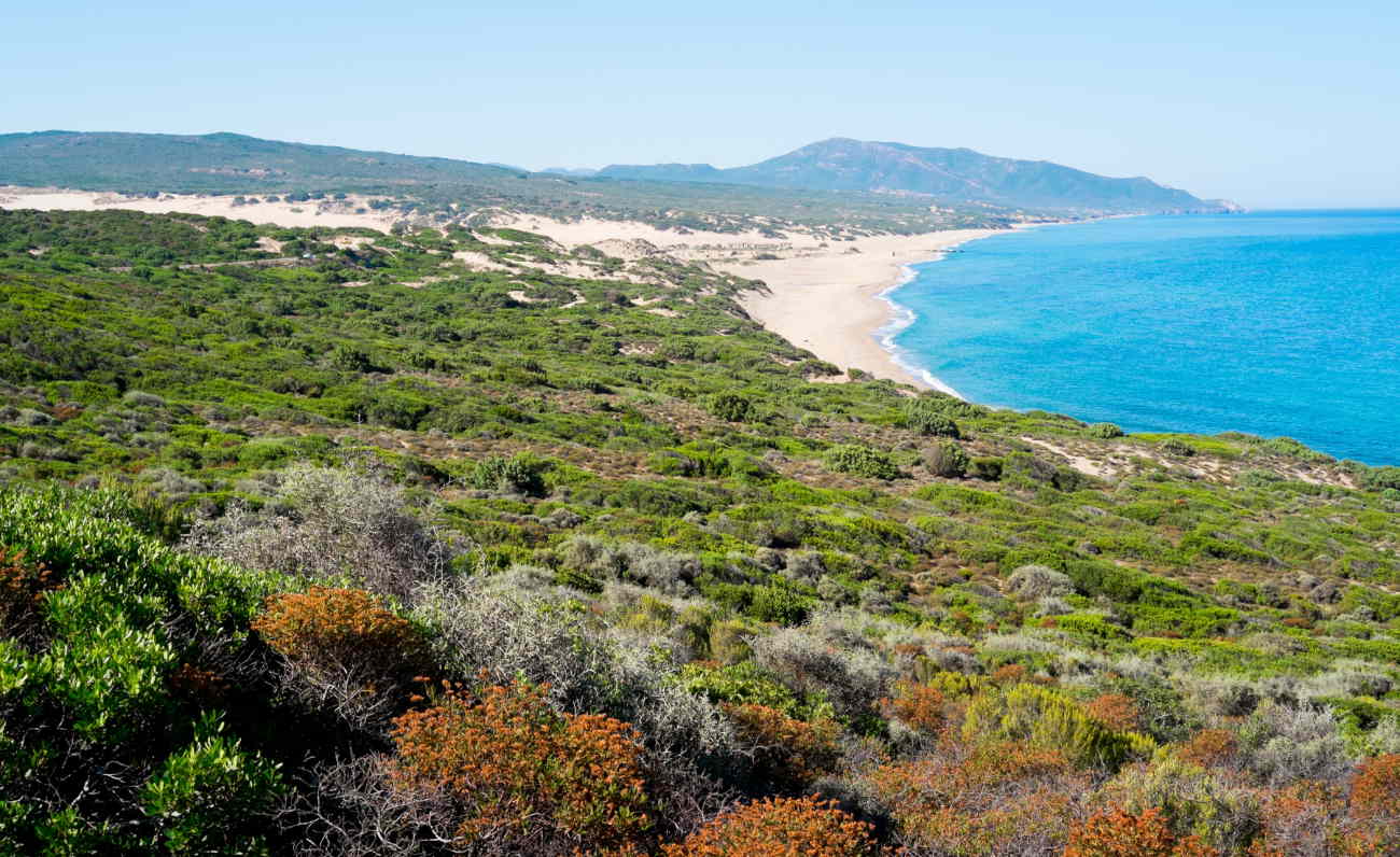 Dichiarate patrimonio dell’Umanità UNESCO, le dune di Piscinas sono tra le più alte d’Europa e passeggiando tra esse è possibile ammirare i meravigliosi alberi di ginepro secolare, ritorti sinuosamente su loro stessi e immersi a tratti nella sabbia. Ma i ginepri non sono le uniche tonalità di verde che colorano queste sabbie, qui è possibile trovare anche boschetti di lentischi e olivastri e cespugli di carota spinosa, giglio di mare e molte altre specie endemiche.