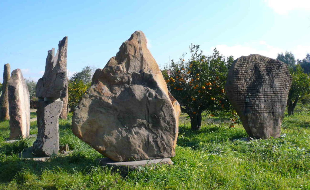 Pinuccio Sciola con il suo Giardino Sonoro presenta, custodite e immerse tra aranci e piante aromatiche mediterranee, più di 700 opere scultoree, di cui alcune monumentali.