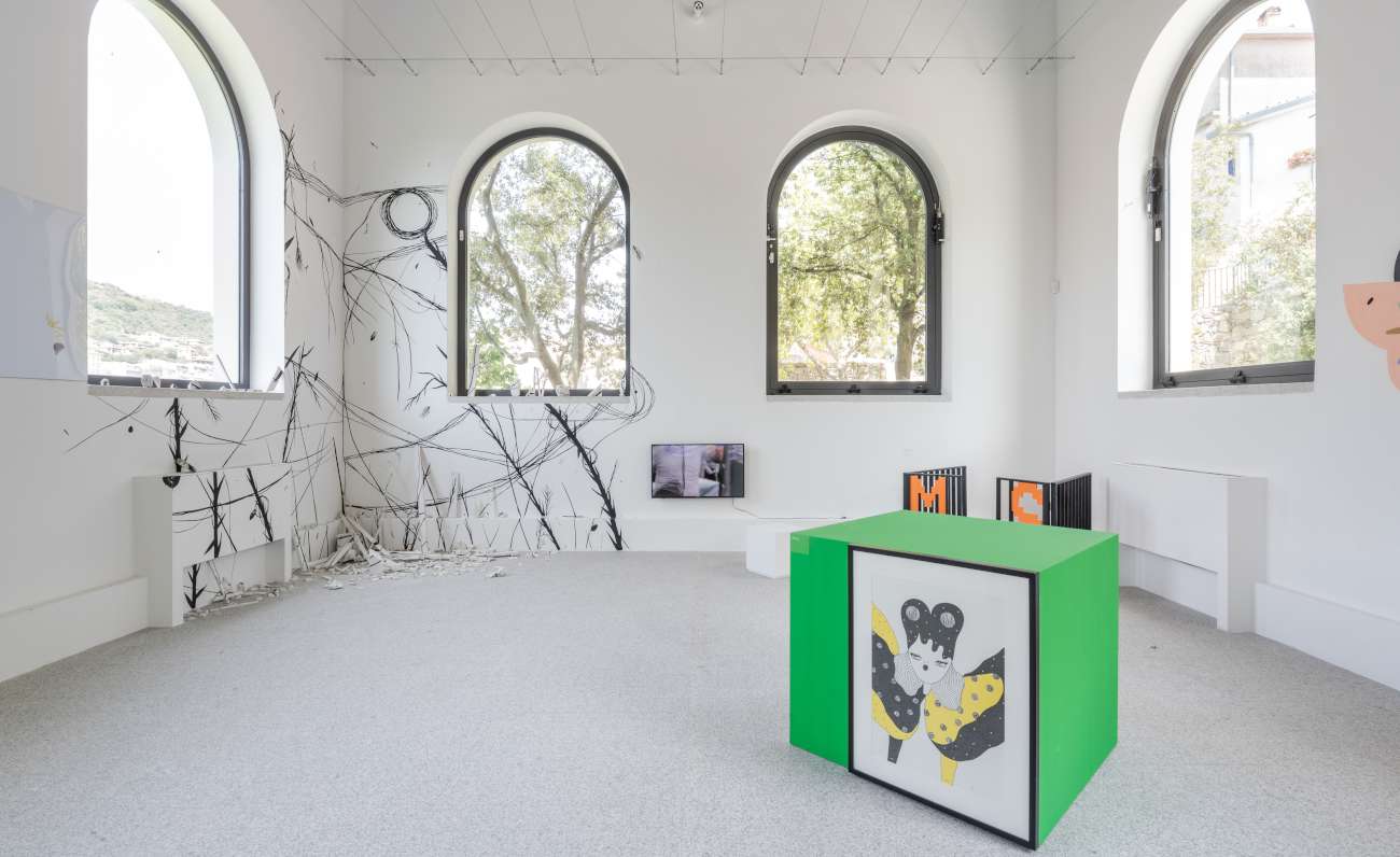 - Museo_Nivola_Back_up_veduta dell’allestimento. Ph. Cédric Dasesson. Courtesy Museo Nivola e gli artisti per le loro opere. Sulla parete a sinistra: Tellas, Winter exercise, 2020